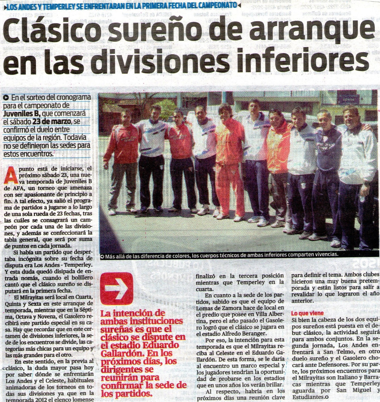 Archivo de noticias a cargo de Dana Hernández. Departamento Prensa C. A. Temperley.