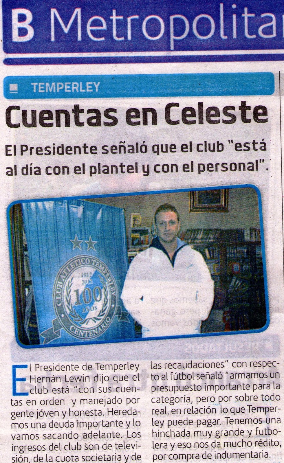 Archivo de noticias a cargo de Dana Hernández. Departamento Prensa C. A. Temperley.