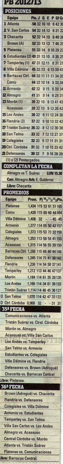 DIARIO OLÉ - SÍNTESIS, CRÓNICA DEL PARTIDO Y TABLA LUEGO DE LA VICTORIA DE TEMPERLEY - 7/4/13