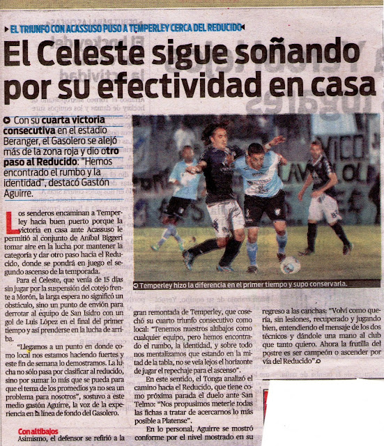 DIARIO POPULAR - SOBRE EL TRIUNFO DE TEMPERLEY Y EL OBJETIVO DEL REDUCIDO - 9/4/13