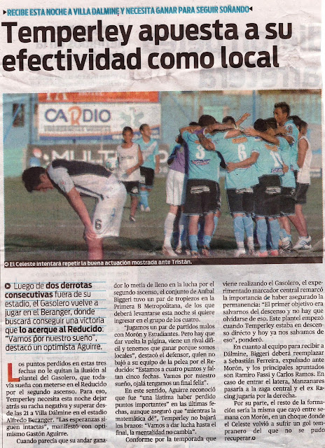 DIARIO POPULAR - LA PREVIA ANTE VILLA DÁLMINE - 30/4/13