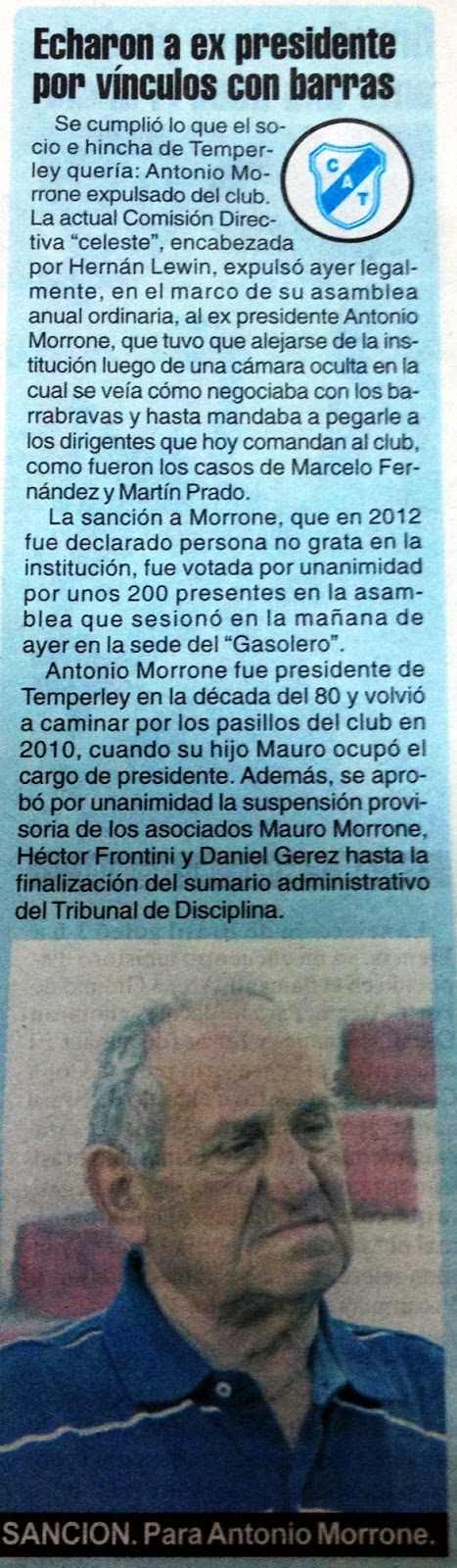 DIARIO CRÓNICA - TEMPERLEY ECHÓ A UN EX DIRIGENTE - 10/6/13