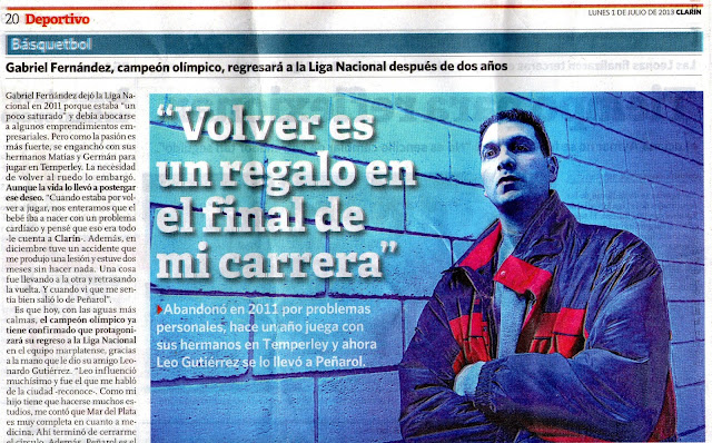 CLARÍN DEPORTES - ENTREVISTA AL EX JUGADOR DE TEMPERLEY, GABRIEL FERNÁNDEZ - 1/7/13