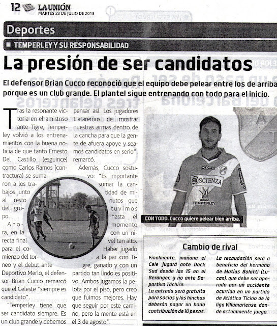 LA UNIÓN - AMISTOSO A BENEFICIO PARA TEMPERLEY - 23/7/13