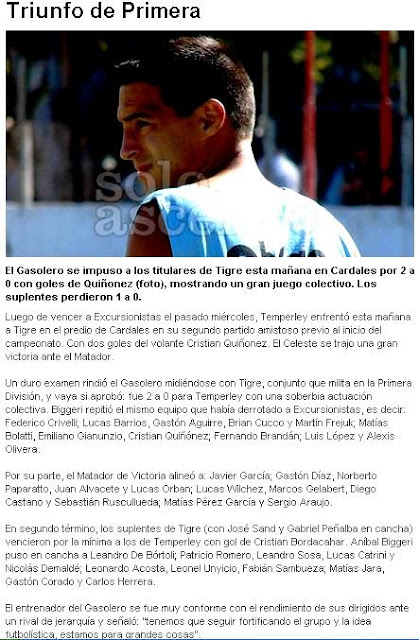 SOLO ASCENSO - TRIUNFO DE TEMPERLEY SOBRE TIGRE EN UN AMISTOSO -20/7/13