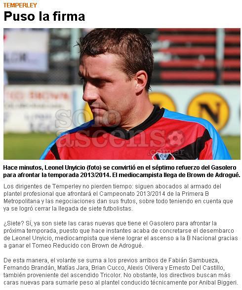 SOLO ASCENSO - UNYCIO FIRMÓ EN TEMPERLEY - 2/7/13