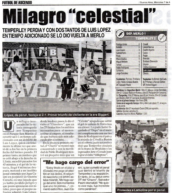 CRÓNICA - TEMPERLEY LE GANÓ A MERLO - 7/8/13