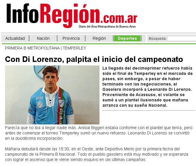 las negociaciones, el Gasolero incorporó a Leonardo Di Lorenzo. Proveniente de