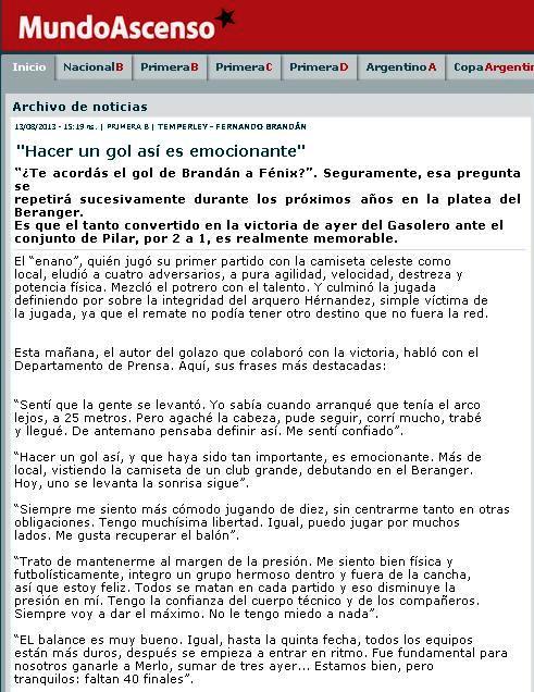 MUNDO ASCENSO - DECLARACIONES DE BRANDAN SOBRE SU GOL A FÉNIX - 13/8/13
