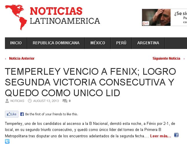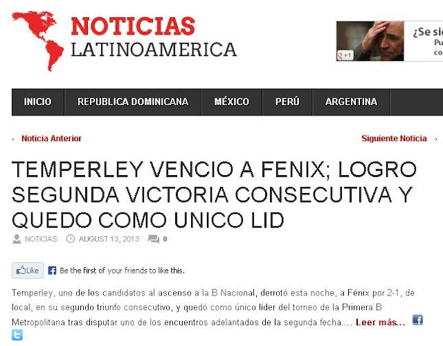 NOTICIAS LATINOAMERICA - TEMPERLEY LE GANÓ A FENIX - 13/8/13