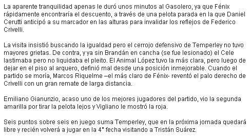 SOLO ASCESO - TEMPERLEY SE IMPUSO ANTE FENIX - 13/8/13