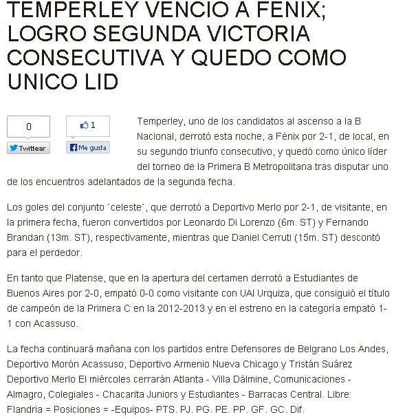 Archivo de noticias a cargo de Dana Hernández. Departamento Prensa C. A. Temperley.