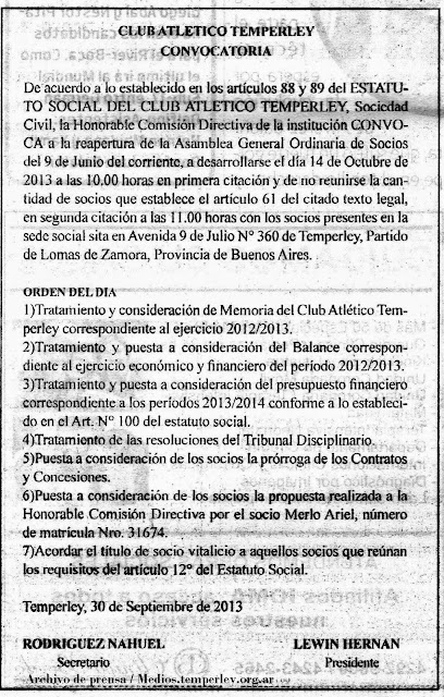 LA UNIÓN - EDICTO DE ASAMBLEA EN TEMPERLEY - 2/10/12