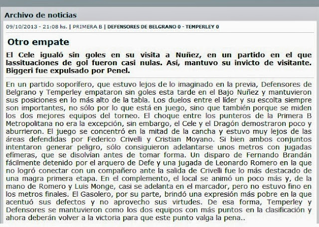 MUNDO ASCENSO - TEMPERLEY IGUALÓ ANTE DEFENSORES - 10/10/13