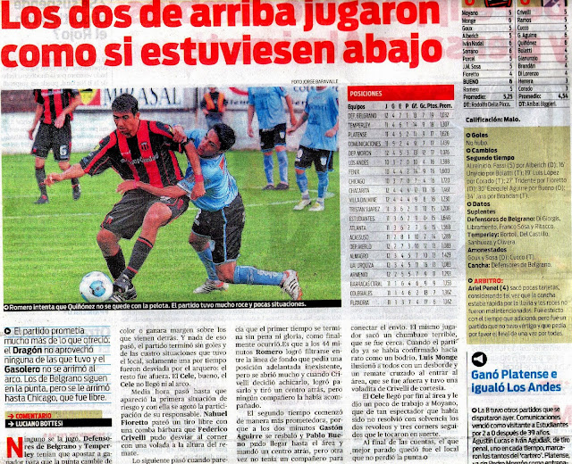 POPULAR - TEMPERLEY Y DEFENSORES IGUALARON 0 A 0 - 10/10/13