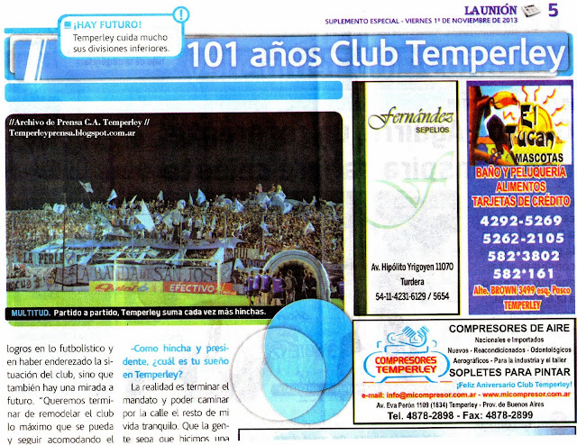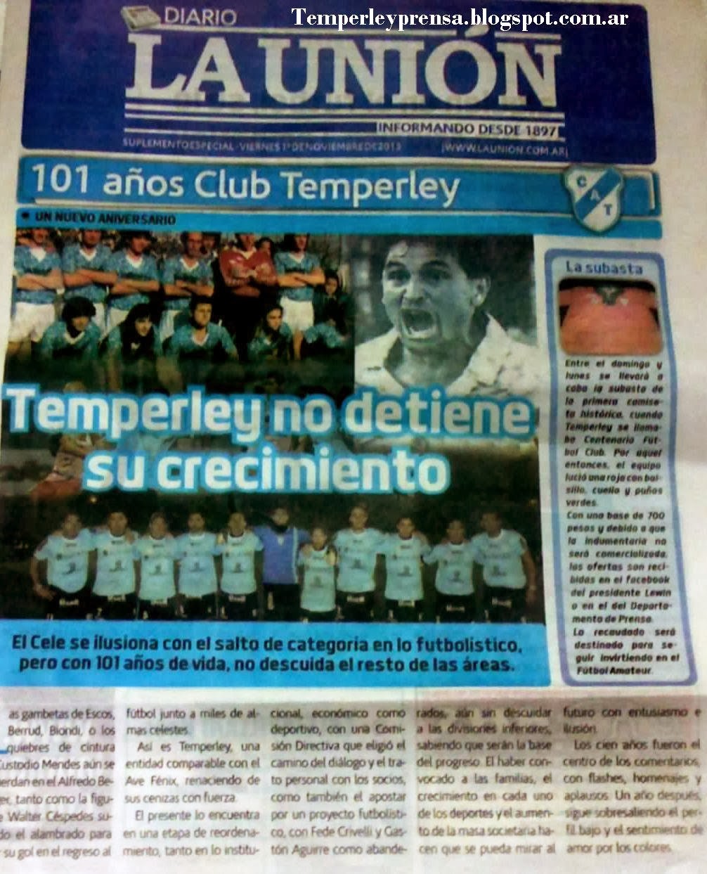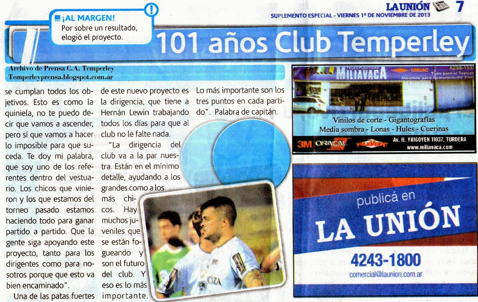 LA UNIÓN - 101 AÑOS DEL CLUB ATLÉTICO TEMPERLEY 1/11/13