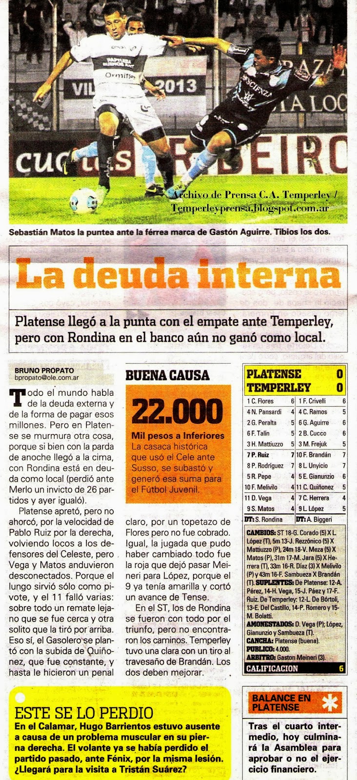 OLÉ - PLATENSE 0 / TEMPERLEY 0 - 6/11/13