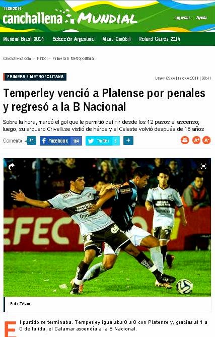 El partido se terminaba. Temperley igualaba 0 a 0 con Platense y, gracias al 1 a 0 de la ida, el Calamar ascendía a la B Nacional.