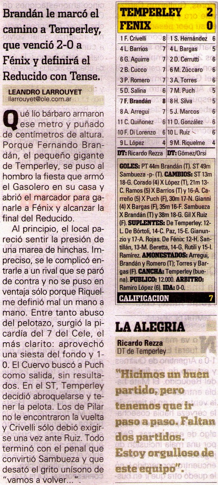 OLÉ - SEMIFINAL: TEMPERLEY 2 / FÉNIX 0 - 2/6/14