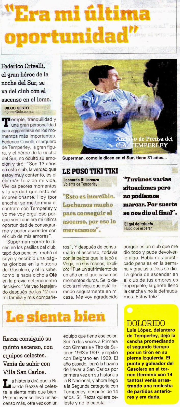 OLÉ - TEMPERLEY ES NACIONAL - 9/6/14