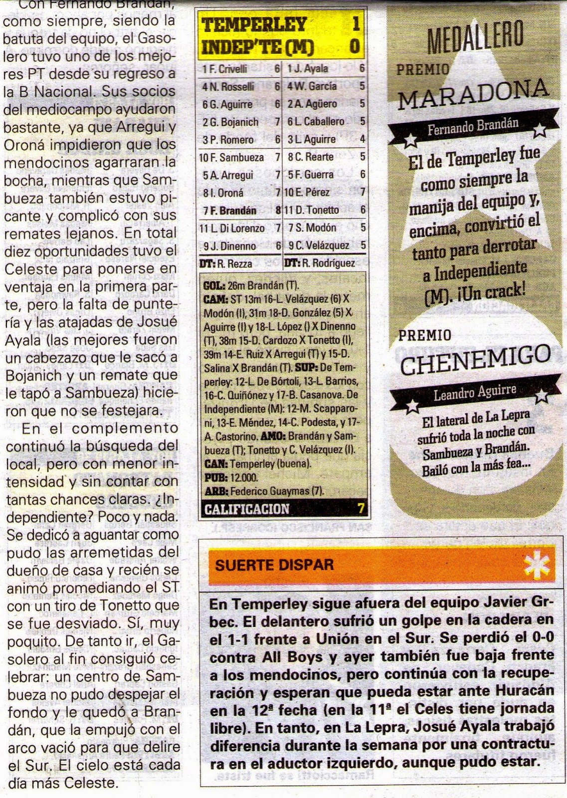 OLÉ - TEMPERLEY 1 / INDEPENDIENTE DE RIVADAVIA 0 - 27/9/14