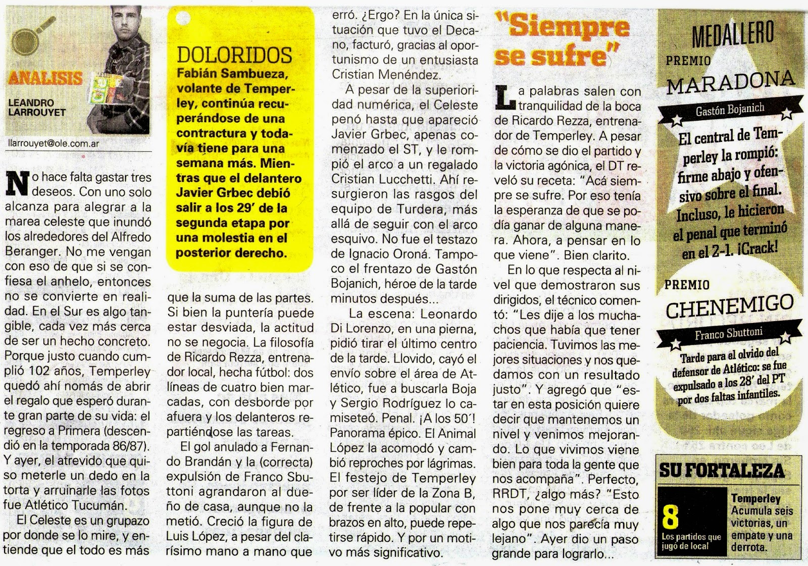 OLÉ - TEMPERLEY 2 / ATLÉTICO TUCUMÁN 1 - 1/11/14
