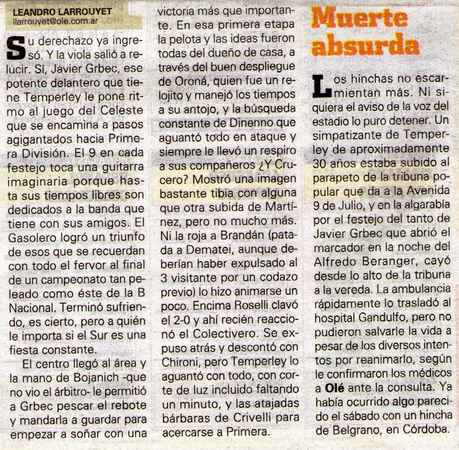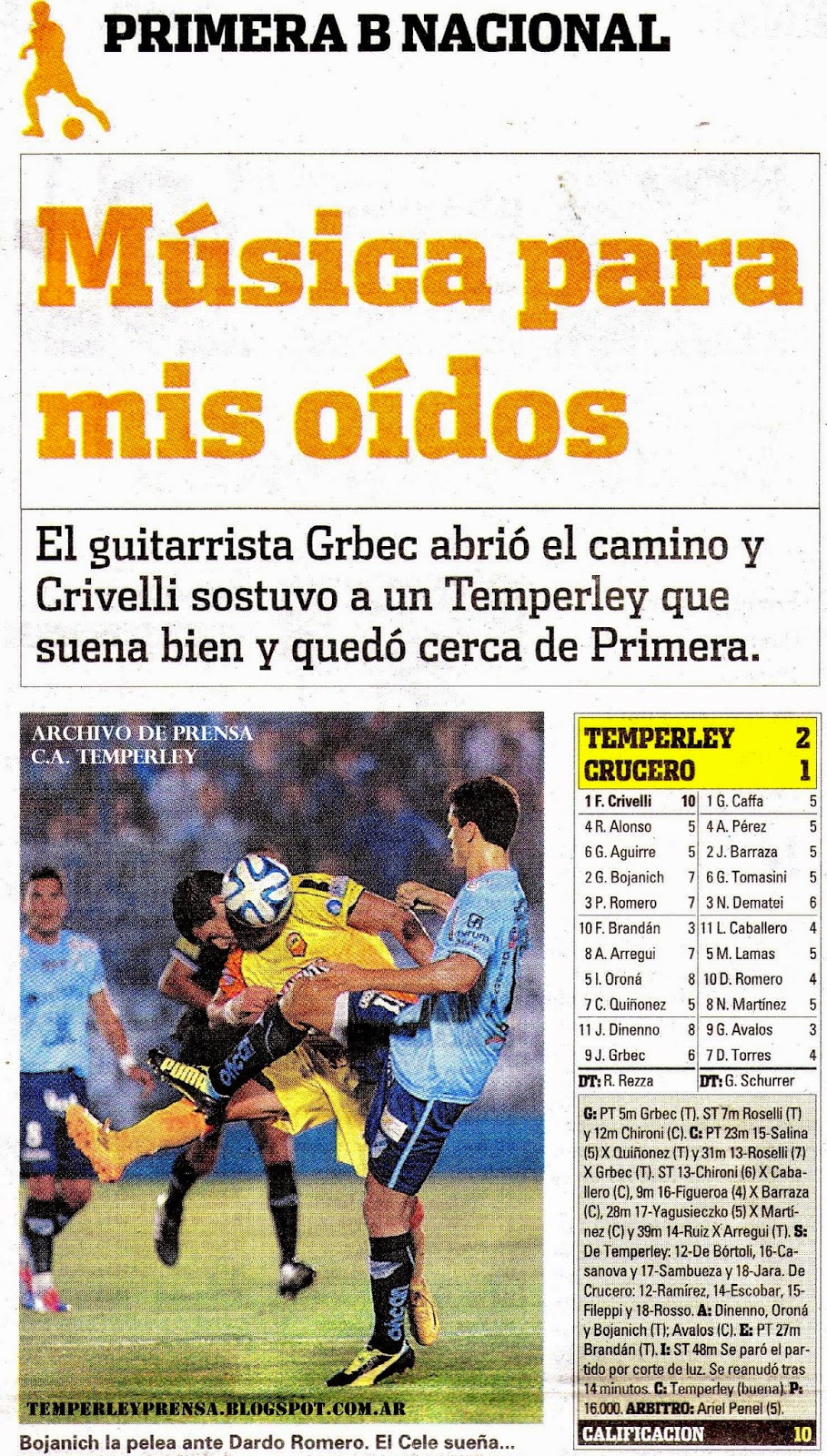 OLÉ - TEMPERLEY 2 / CRUCERO DEL NORTE 1 - 11/11/14