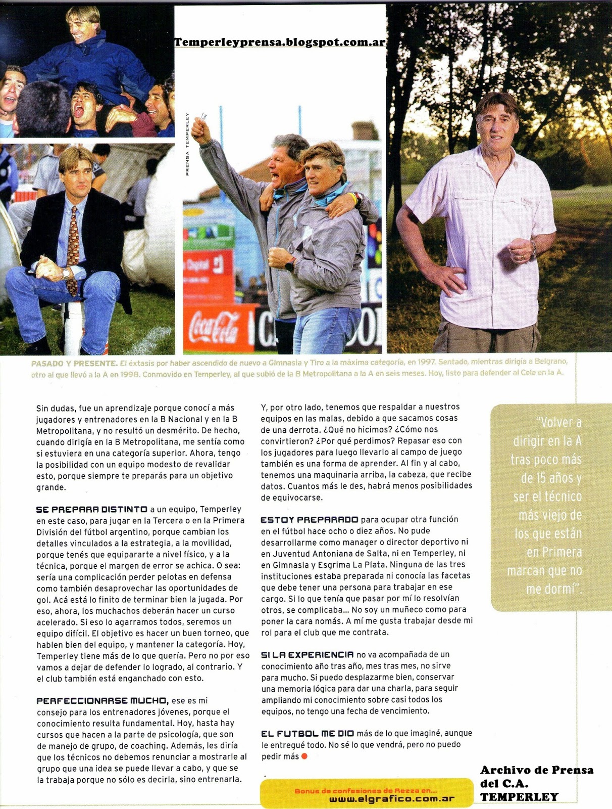 EL GRÁFICO - ENTREVISTA A RICARDO REZZA, DT DE TEMPERLEY - 20/1/15