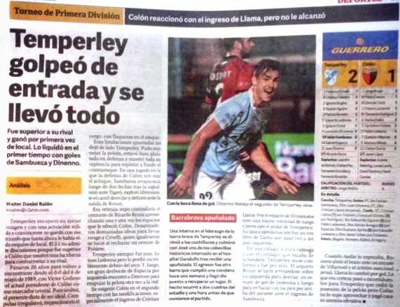 CLARÍN - TEMPERLEY 2 / COLÓN 1 - 11/4/15