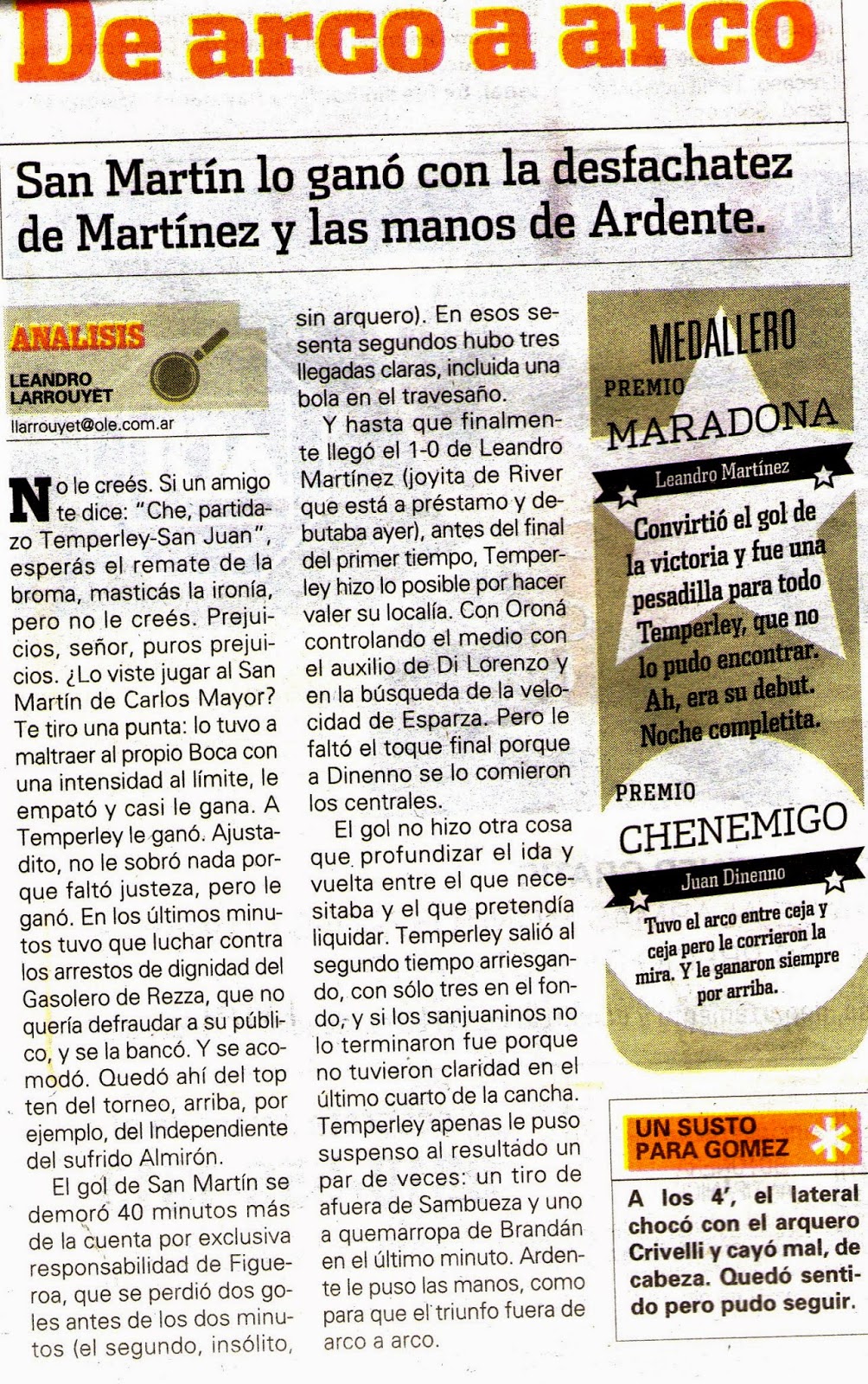 OLÉ - TEMPERLEY 0 / SAN MARTÍN 1 - 5/5/15