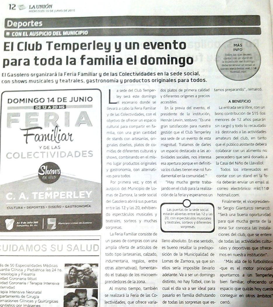 LA UNIÓN - SE VIENE LA FERIA EN TEMPERLEY - 10/6/15