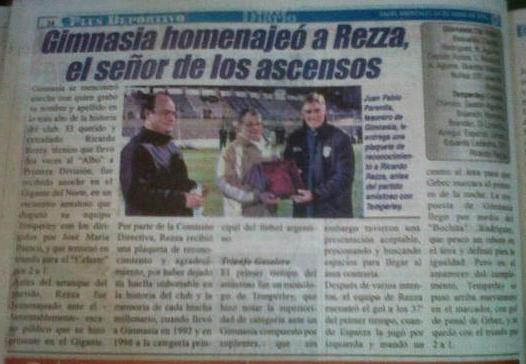 NUEVO DIARIO DE SALTA - GIMNASIA HOMENAJEÓ A REZZA EL DT DE TEMPERLEY - 24/6/15
