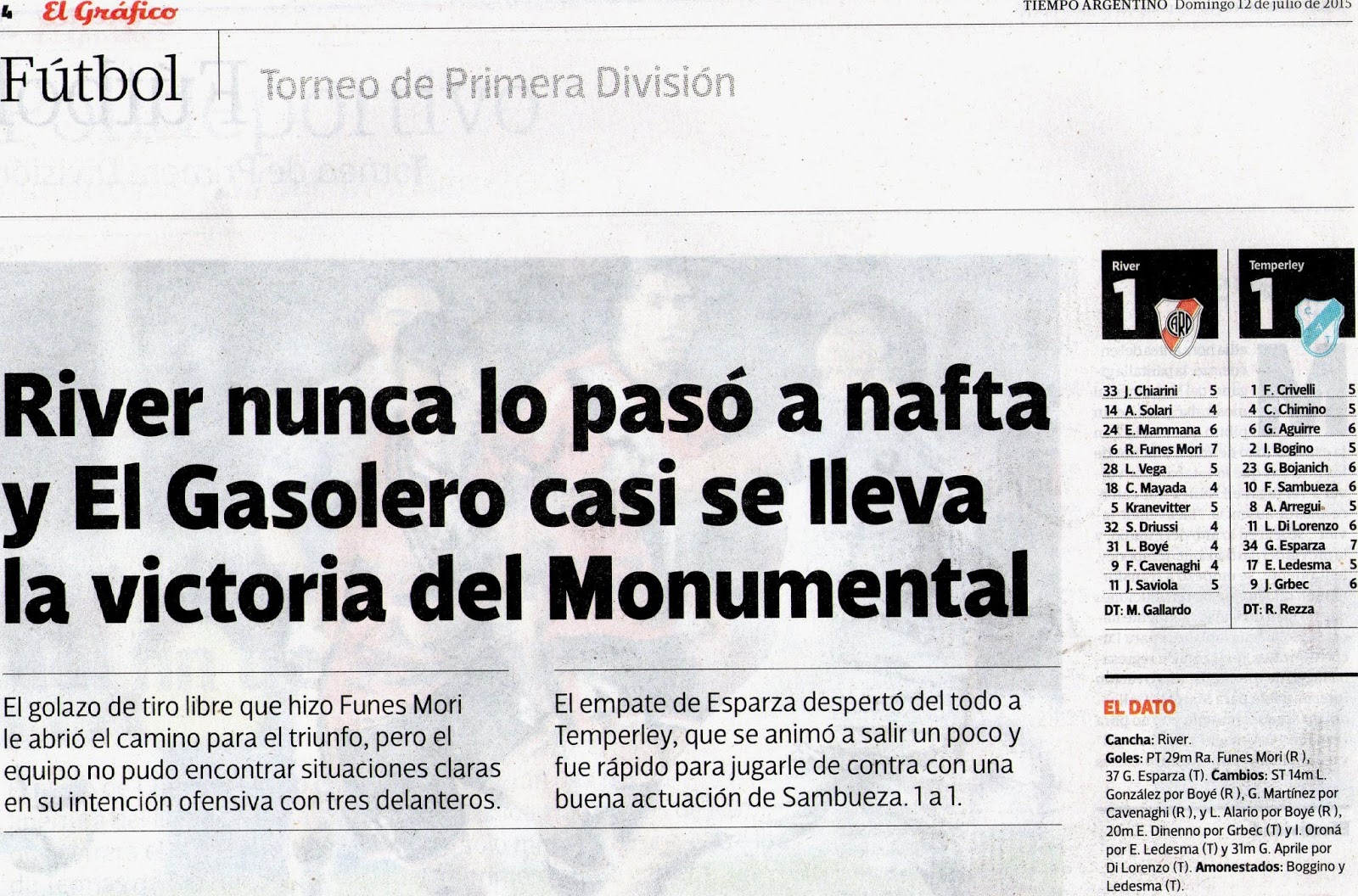 TIEMPO ARGENTINO - RIVER 1 / TEMPERLEY 1 - 12/7/15