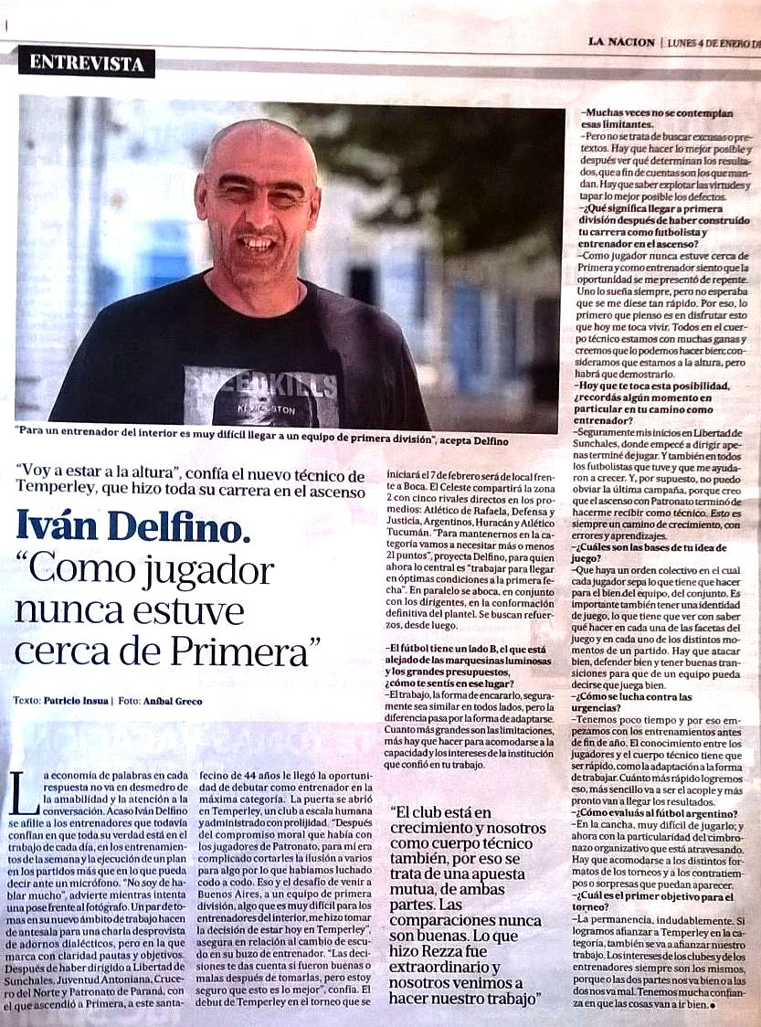 LA NACIÓN - ENTREVISTA A DELFINO, DT DE TEMPERLEY - 4/1/16