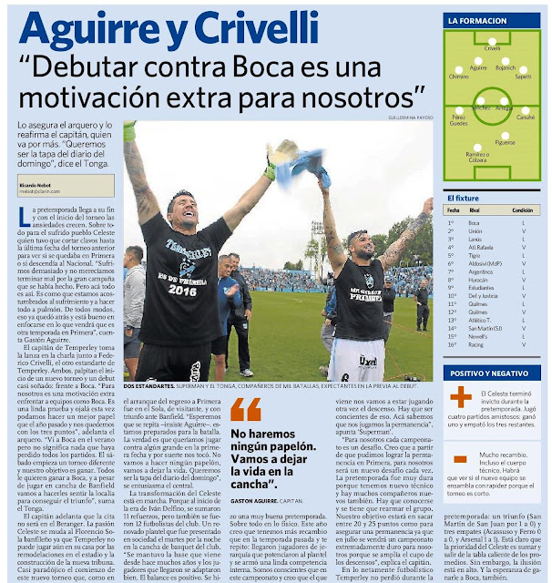 CLARÍN - LA PREVIA DE TEMPERLEY / BOCA - 4/2/16