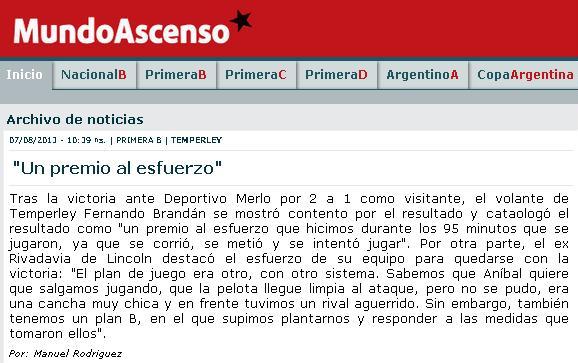 MUNDO ASCENSO - LA PALABRA DE BRANDAN, VOLANTE DE TEMPERLEY - 7/8/13