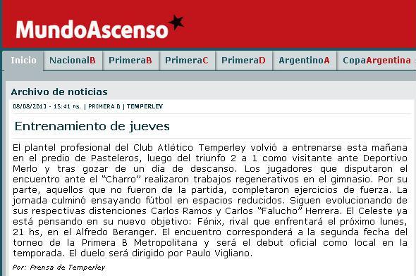 Archivo de noticias a cargo de Dana Hernández. Departamento Prensa C. A. Temperley.