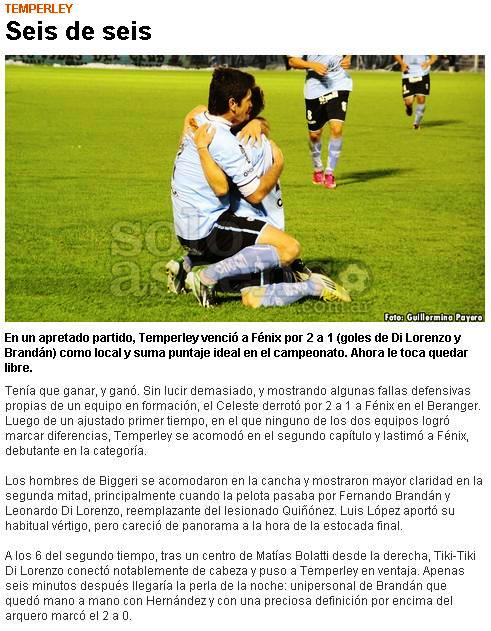 SOLO ASCESO - TEMPERLEY SE IMPUSO ANTE FENIX - 13/8/13