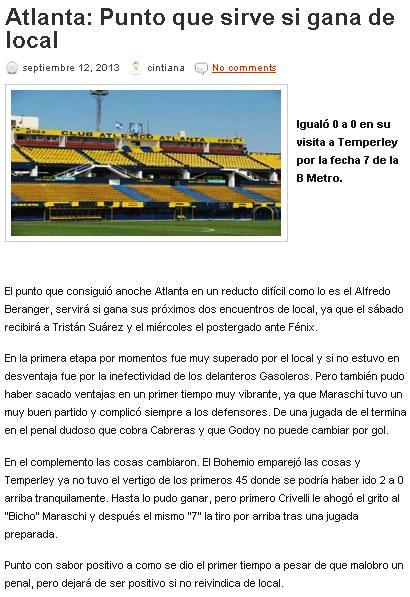 ENTRETIEMPO DE ASCENSO - VISIÓN DE ATLANTA SOBRE EL EMPATE 0 A 0 ANTE TEMPERLEY - 12/9/13