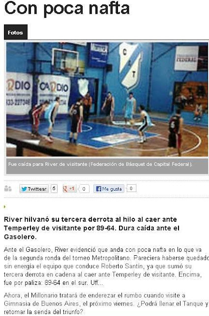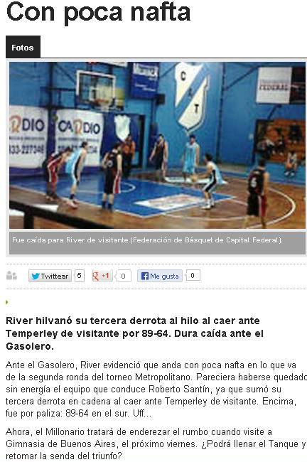 River Plate 64: Pannunzio 4, Veghetti 5,Barcelonna 16, Dente 4, Goity 10 (fi); Flami 9, Carbone 9, Montiroli 0, Müller7 y Mariani 0. DT.: R. Santín