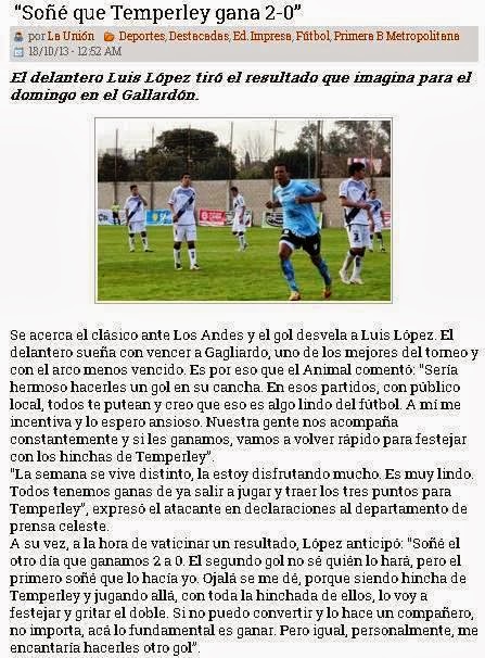 LA UNIÓN - LUIS LOPEZ SOBRE EL PARTIDO DE TEMPERLEY FRENTE A LOS ANDES DEL DOMINGO - 18/10/13