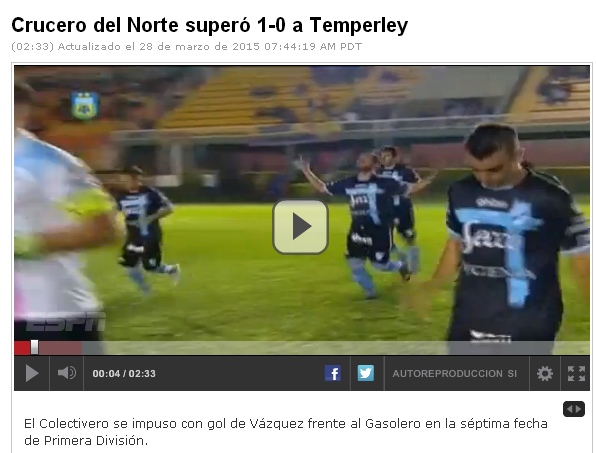ESPN - CRUCERO 1 / TEMPERLEY 0 - 28/3/15