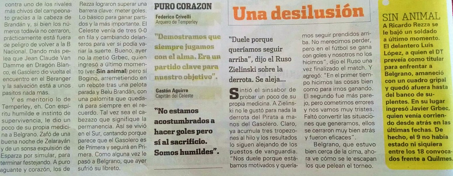 OLÉ - TEMPERLEY 2 - BELGRANO 1 - 6/9/15